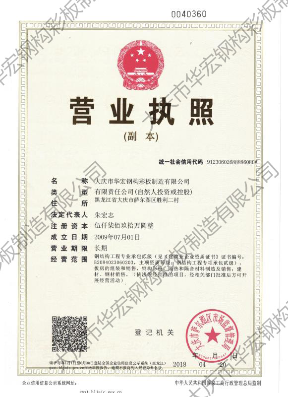 華宏鋼構(gòu)始建于2009年8月9日,總部位于大慶市薩爾圖區(qū)南一路13號(hào),現(xiàn)有大慶市華宏鋼構(gòu)彩板制造有限公司、黑龍江省華宏力安綠建科技有限公司、大慶市華宏鋼構(gòu)彩板制造有限公司長(zhǎng)春分公司、黑龍江省海森新材料科技有限公司、大慶市瑞和通螺栓廠五家工業(yè)企業(yè)形成了以彩板復(fù)合板、裝配式鋼結(jié)構(gòu)建筑、保溫材料、配件制造為主的五大生產(chǎn)基地,占地總面積 20余萬(wàn)平方米,生產(chǎn)車間5萬(wàn)平方米。中高層管理干部26 人,高級(jí)工程師9人,各類國(guó)家注冊(cè)執(zhí)業(yè)人員 32 人,車間技工 260人,專業(yè)安裝隊(duì)伍 10 余支,帶動(dòng)就業(yè) 500